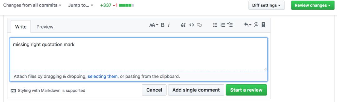 在 review 别人代码时,如何提交你自己的 comments 存在两个选项: